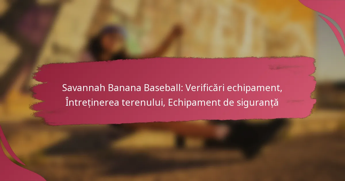 În baseball-ul Savannah Banana, verificările esențiale ale echipamentului sunt cruciale pentru asigurarea siguranței și performanței jucătorilor, concentrându-se pe bate, mănuși și echipamente de protecție. Întreținerea regulată a terenului, inclusiv întreținerea gazonului și inspecțiile de siguranță, este vitală pentru condiții optime de joc. În plus, jucătorii trebuie să poarte echipamente de protecție adecvate, cum ar fi căști și protecții pentru piept, pentru a minimiza riscurile de accidentare în timpul jocurilor și antrenamentelor.